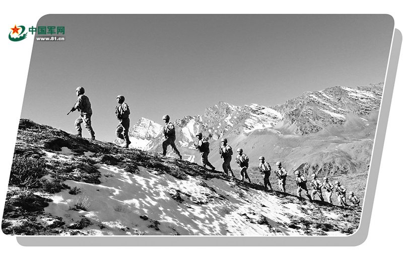 西躲山南軍分區某邊防團官兵履行巡查義務。