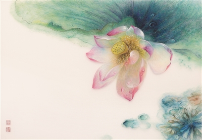圖為蘇繡《荷露嬌欲語》,作者姚建萍。